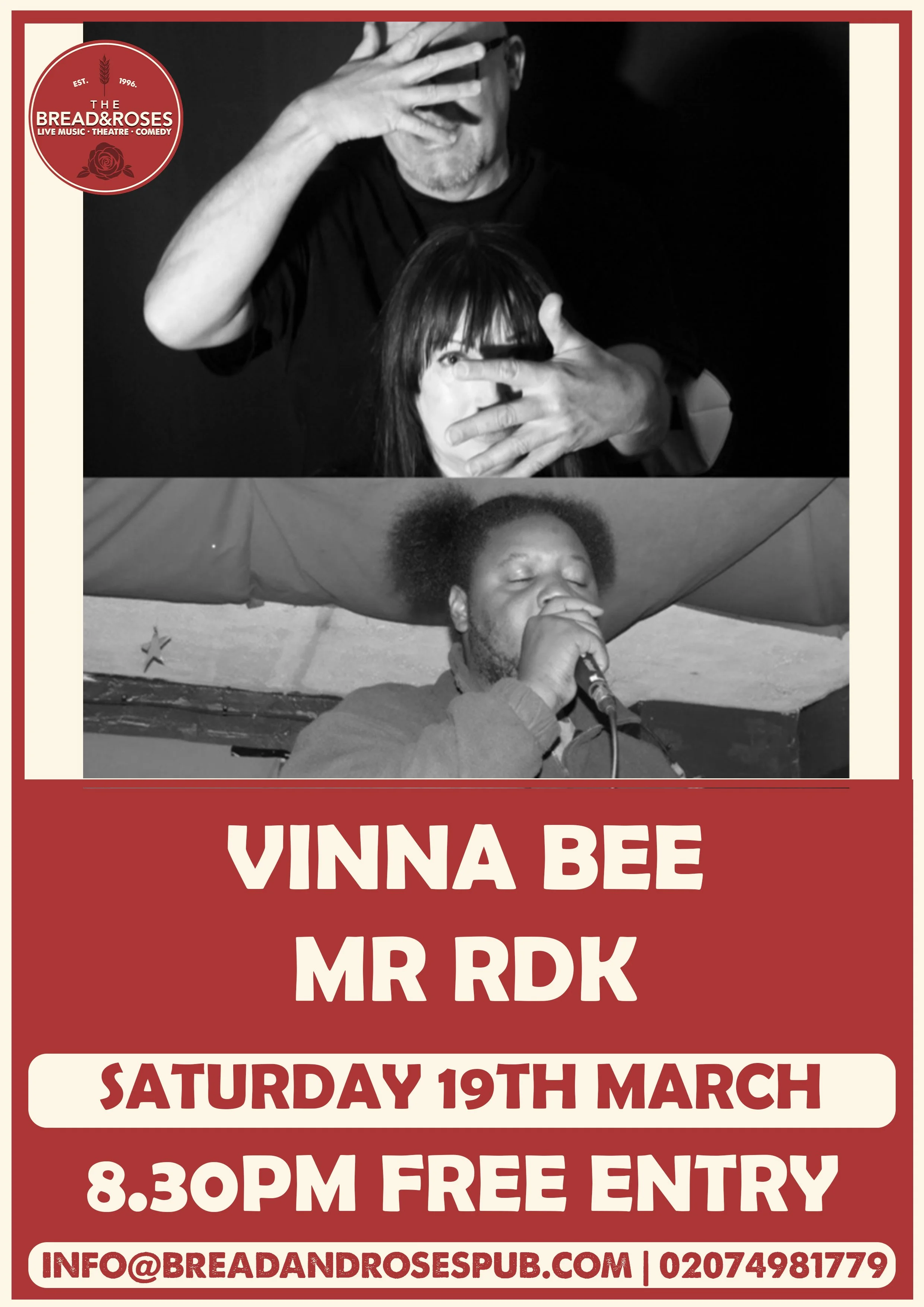 9.30pm - ‘Vinna Bee’ - UK Alternative Electronic Pop artist Vinna Bee has been performing & releasing her own music since 2013 taking her to over 100 appearances across the UK & the USA at both festivals & established venues. Sometimes dark & sultry & more often tuneful, melodic & thought provoking.